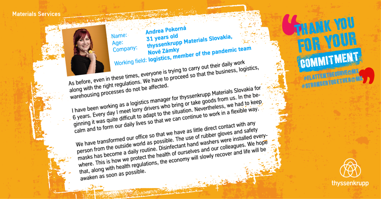 A koronavírus (COVID-19) járvány aggodalmat okoz szerte a világon. Mi, a thyssenkrupp Materials Hungary-nél, intézkedéseket tettünk kollégáink, ügyfeleink és partnereink egészségének és biztonságának védelme érdekében, és ezzel egyidejűleg kiszámíthatóan biztosítjuk üzleti tevékenységünk folytonosságát.